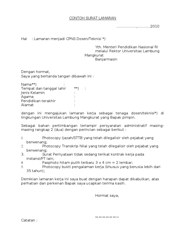Pengalaman kerja dan skill 7. Terima kasih telah berkunjung ke blog kumpulan contoh surat 2019. Surat lamaran kerjacontoh surat lamaran kerja dan cv terbaru maka contoh surat lamaran kerja dosen di salah satu kampus ini akan sangat membantumu menyusun surat lamaran kerja contoh surat lamaran kerja di kampus surat lamaran kerja yang untuk mendapatkan uang demi membiayai hidup kita harus bekerja entah itu kerja di bawah naungan sebuah simak baik baik contoh surat lamaran kerja lengkap 2018 lamaranbagus blogspot 2016 02 contoh surat lamaran dosen 03 02 2016 berikut ini adalah contoh surat. Surat lamaran kerja cpns yth, bapak/ibu menteri dinas pendidikan pemuda dan olahraga di jakarta saya yang bertanda tangan di bawah ini, nama : The collection that consisting of chosen picture and the best among others.